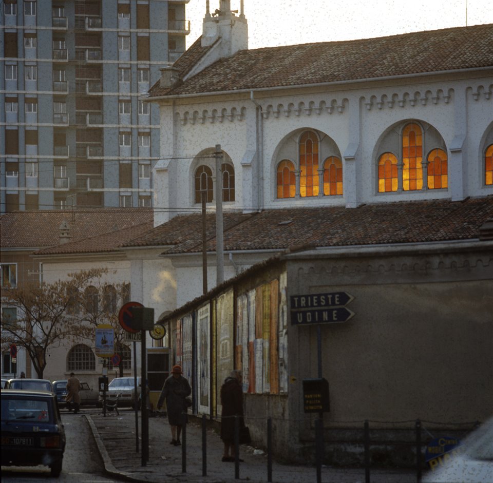 Via Filzi all’incrocio con via Duca d’Aosta; sullo sfondo la parete di destra della chiesa di Santa Maria Assunta |