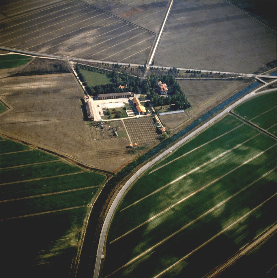 Veduta aerea di Casa Rondon con un tratto della strada provinciale 19; in basso un tratto di via Silvio Marcuzzi |