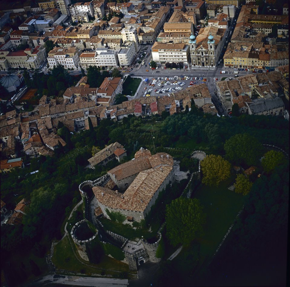 Veduta aerea del Castello di Gorizia, piazza della Vittoria con la chiesa di Sant’Ignazio |