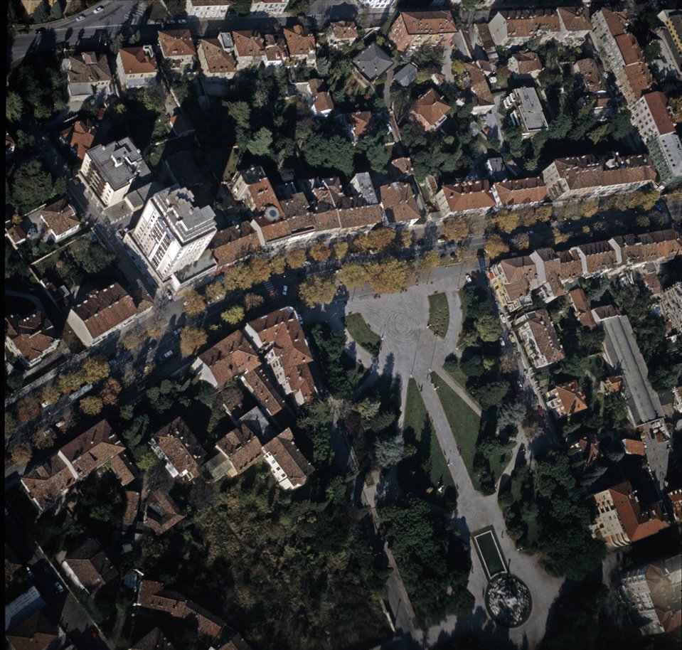 Veduta aerea di una parte del Centro storico con il Parco della Rimembranza e un tratto di Corso Italia |