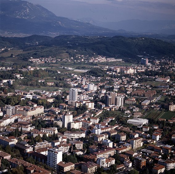 Veduta aerea da sud-ovest verso nord-est con parte del Centro storico e il quartiere Sant’Anna |