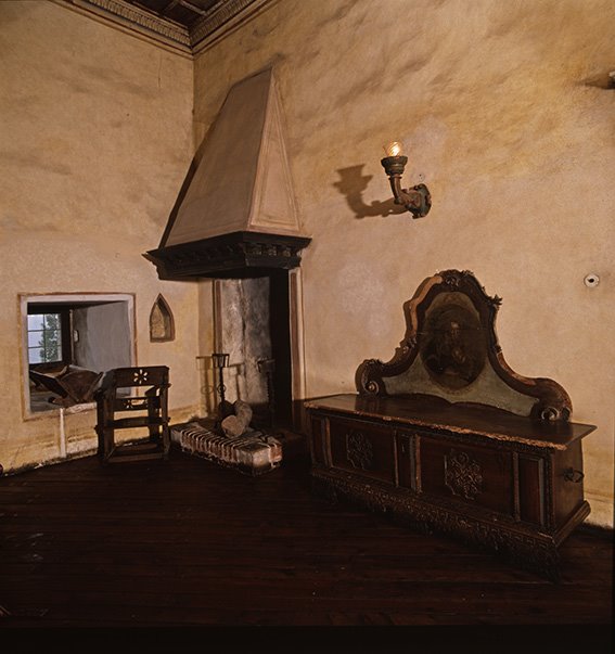 Una sala con caminetto all’interno del Castello di Gorizia |