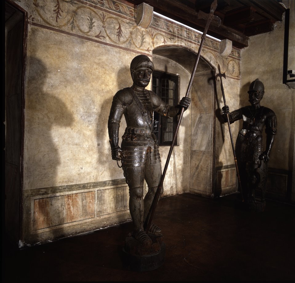 Due statue lignee nella Sala del Conte all’interno del Castello di Gorizia |