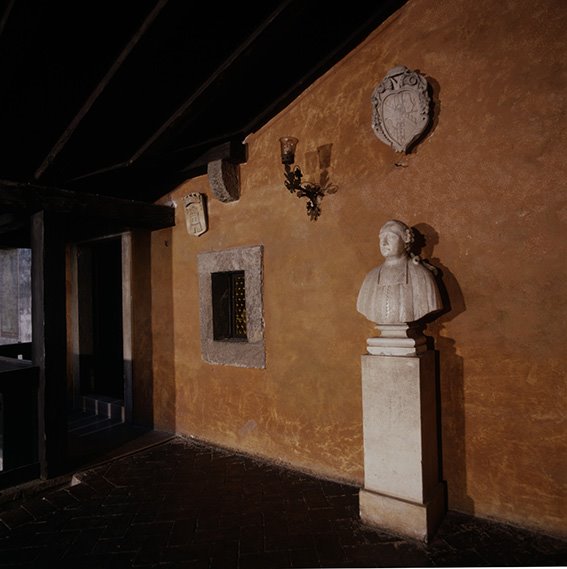 Loggia degli Stemmi all’interno del Castello di Gorizia con il busto di Enrico di Auesberg |
