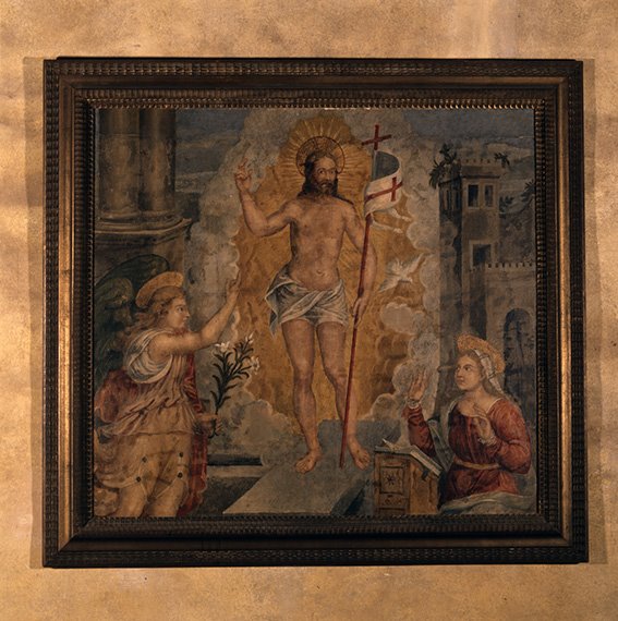 Dipinto ad olio su tela raffigurante un’Annunciazione con Cristo Risorto (secolo XVIII) in una sala del Castello di Gorizia |