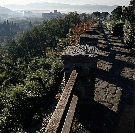 Parte del parco urbano del Castello nel Centro Cittadino (Borgo Castello); sul fondo il Seminario Minore (ora Università di Trieste) |