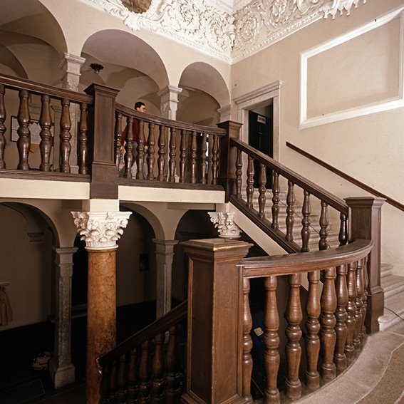 Scalone d’onore e soffitto decorato a stucchi in Palazzo Werdenberg (Biblioteca Statale Isontina) |