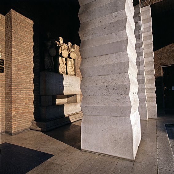 Palazzo delle Poste, opera di Angiolo Mazzoni (1929-1930, inaugurato nel 1932), e statue |
