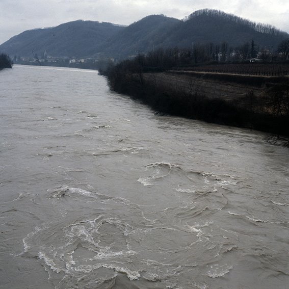 Fiume Isonzo dal ponte del Torrione (anche ponte di Piuma/Pevma) nel quartiere di Straccis |