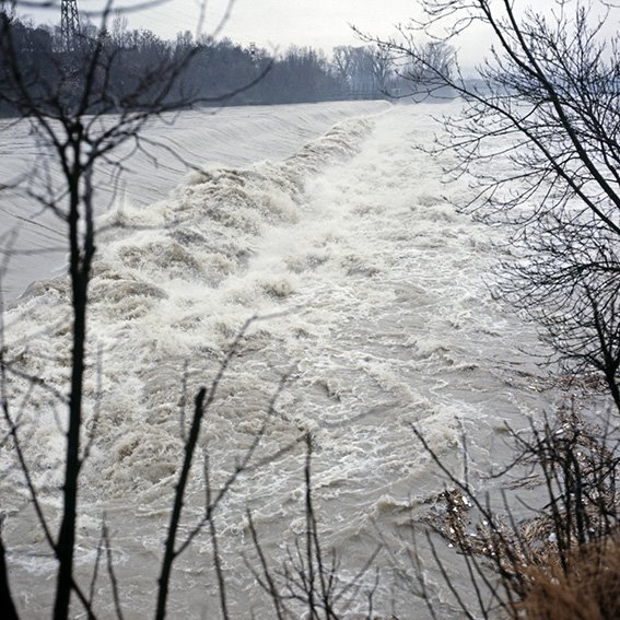 | Soggetto | Fiume Isonzo con la traversa (Diga) di Straccis durante la piena |