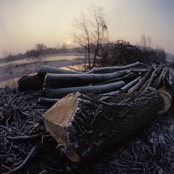 Fiume Isonzo all’altezza della frazione di Sant’Andrea/Štandrež nel comune di Gorizia; in primo piano tronchi tagliati |