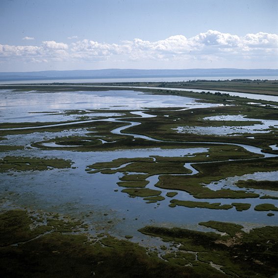 Veduta aerea del fiume Isonzo in prossimità della foce e il canale Quarantia |