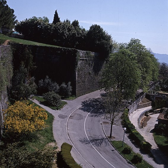 Viale D’Annunzio con una parte della cinta a bastioni del Castello |