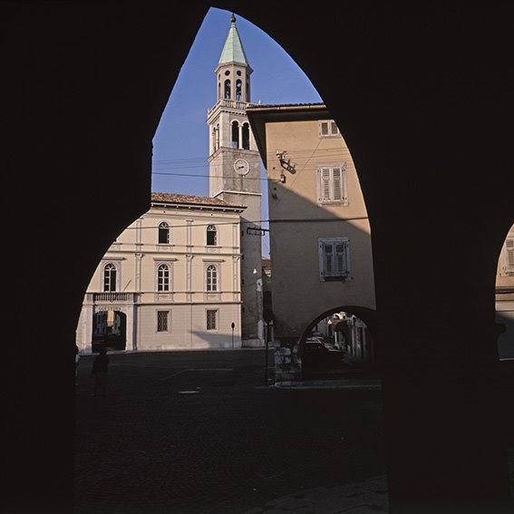 Casa degli Ungrispach in piazza Cavour, il Palazzo degli Stati Provinciali (Questura) e il campanile della chiesa metropolitana dei Santi Ilario e Taziano (Duomo) |