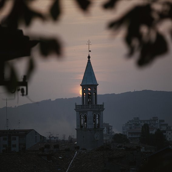 Campanile della chiesa metropolitana dei Santi Ilario e Taziano (Duomo); sul fondo il Monte Calvario |