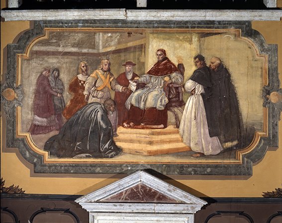 Uno degli affreschi di Eugenio Moretti Larese nel presbiterio della chiesa di Sant’Ignazio |