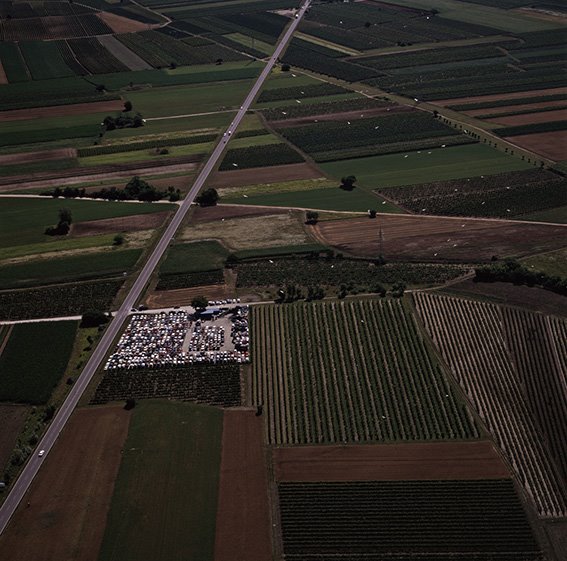 Veduta aerea di campi coltivati e della strada regionale 56 |