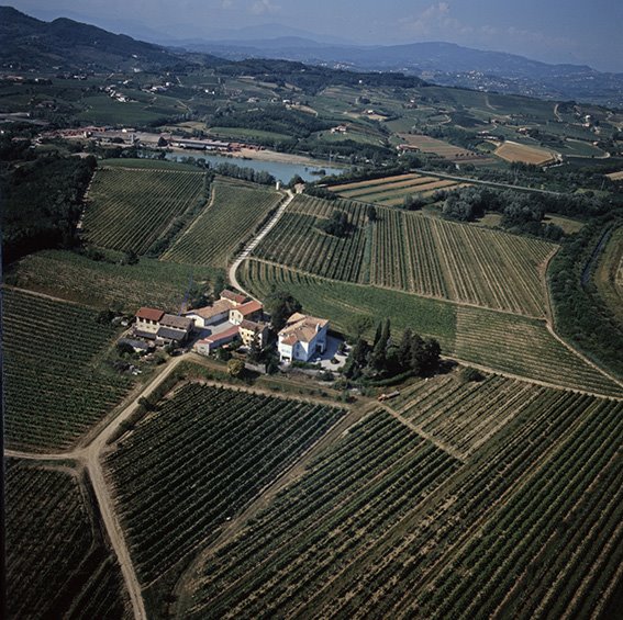 Veduta aerea del Collio cormonese con vigneti in località Roncada |