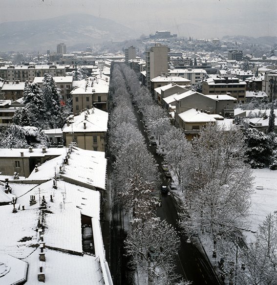 Centro cittadino e corso Italia; sullo sfondo il Castello di Gorizia |