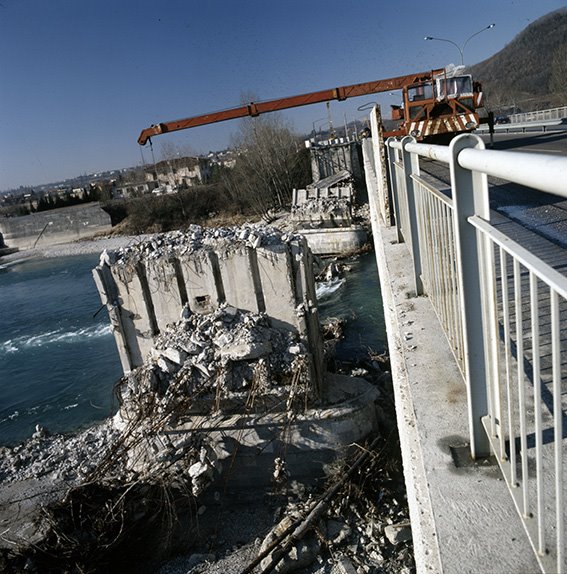 Ponte VIII Agosto (il vecchio ponte VIII Agosto in demolizione) e il fiume Isonzo |