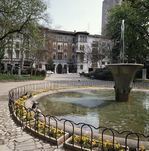Giardini Pubblici nel Centro Cittadino con la fontana dei Giardini Pubblici; sullo sfondo un tratto di corso Verdi |