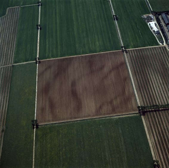 Veduta aerea di campi coltivati nella frazione di Borgnano nel comune di Cormòns |