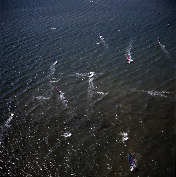 Competizione agonistica di wind-surf nel golfo di Panzano |