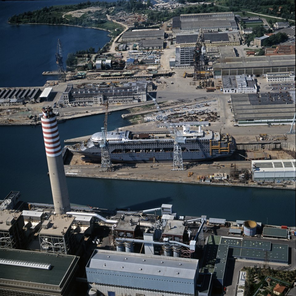 Veduta aerea di parte dello stabilimento Fincantieri – Cantiere Navale di Monfalcone con in primo piano la centrale elettrica A2A |
