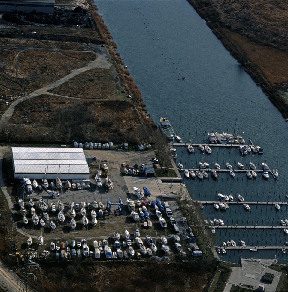 Veduta aerea del canale di Sablici con imbarcazioni turistiche ormeggiate |