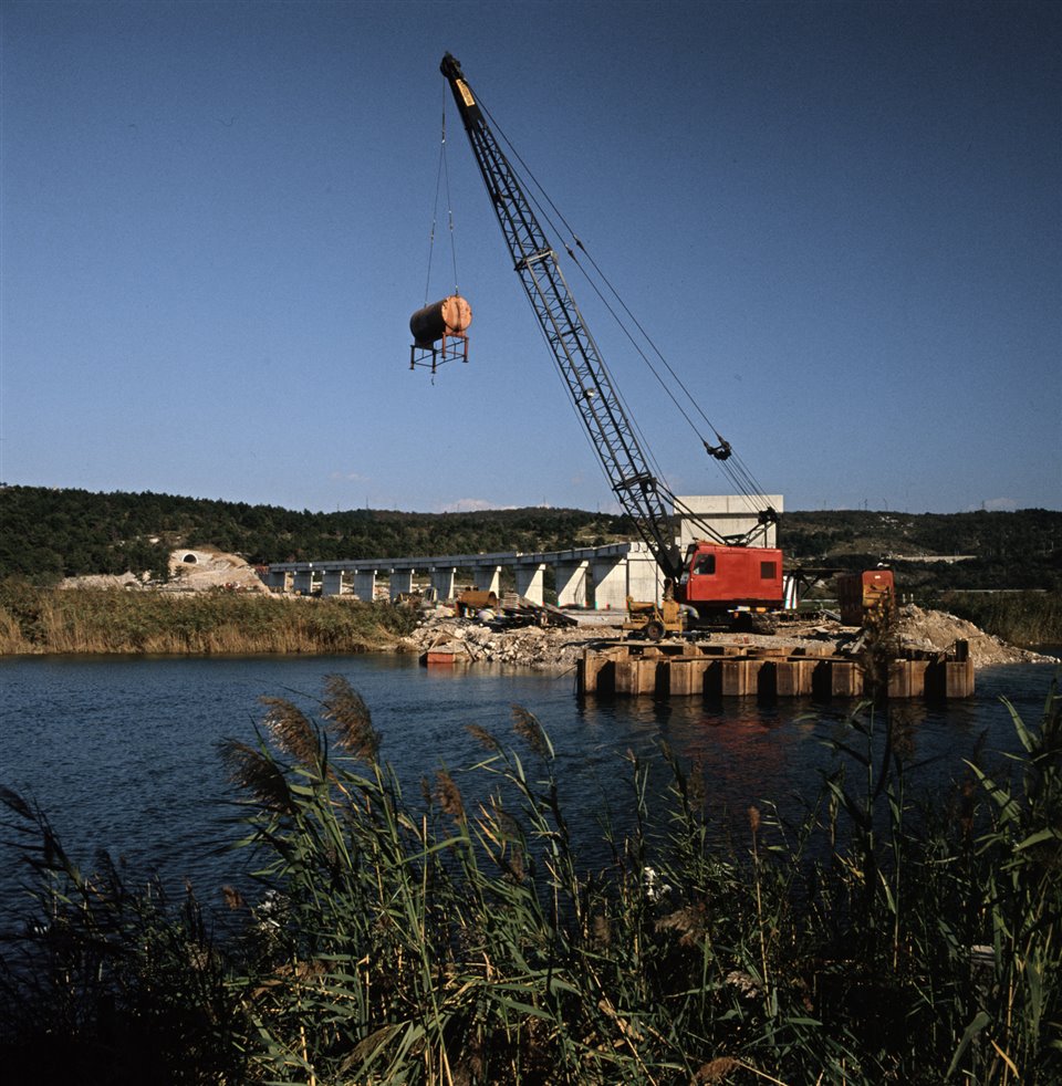 Parte del canale di Sablici e la linea ferroviaria Monfalcone - Monfalcone porto in costruzione |
