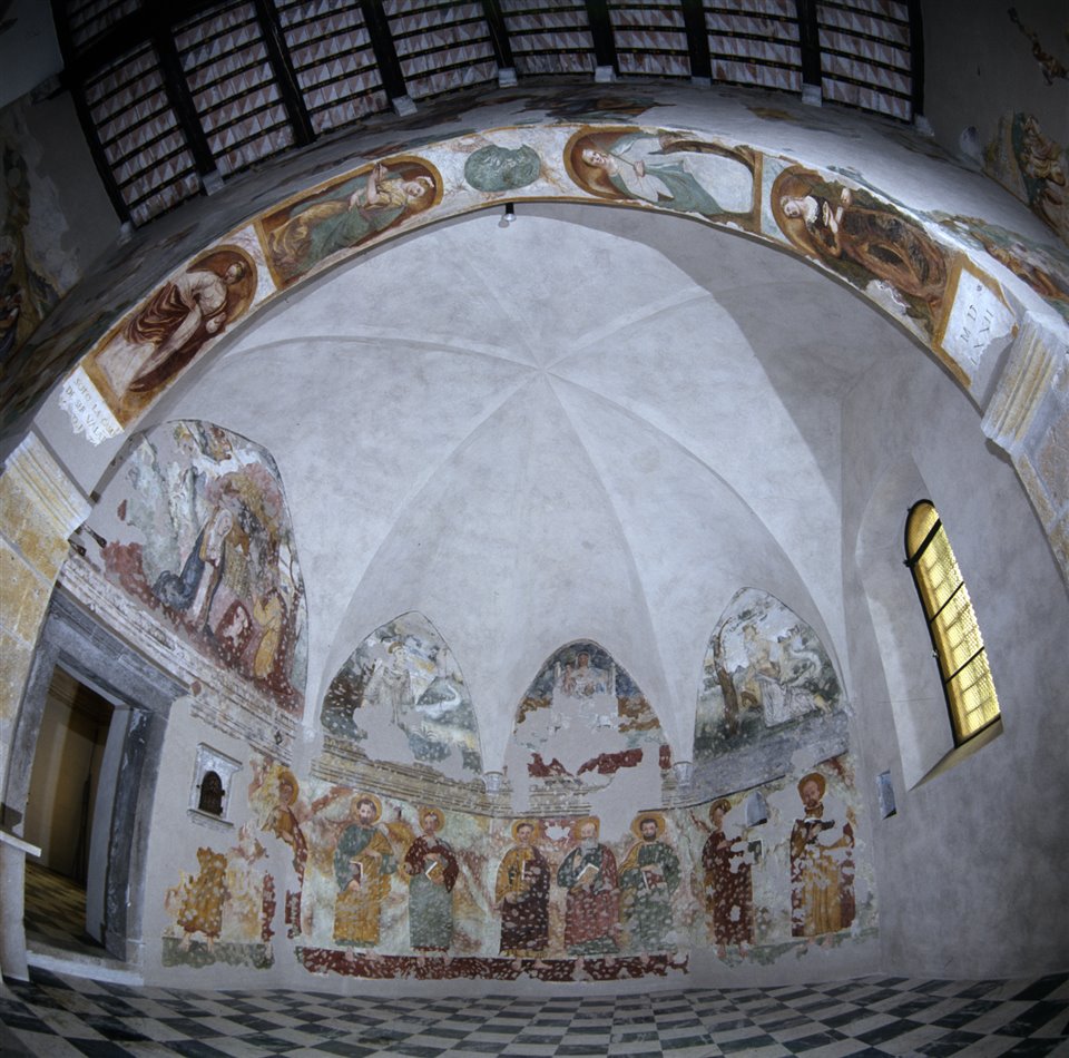 Interno della chiesa di Santa Maria in Monte con affreschi nella zona absidale |