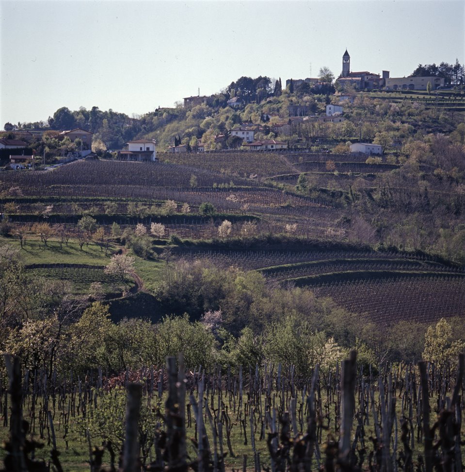 Vigneti nel territorio di San Floriano del Collio, sullo sfondo l’abitato |