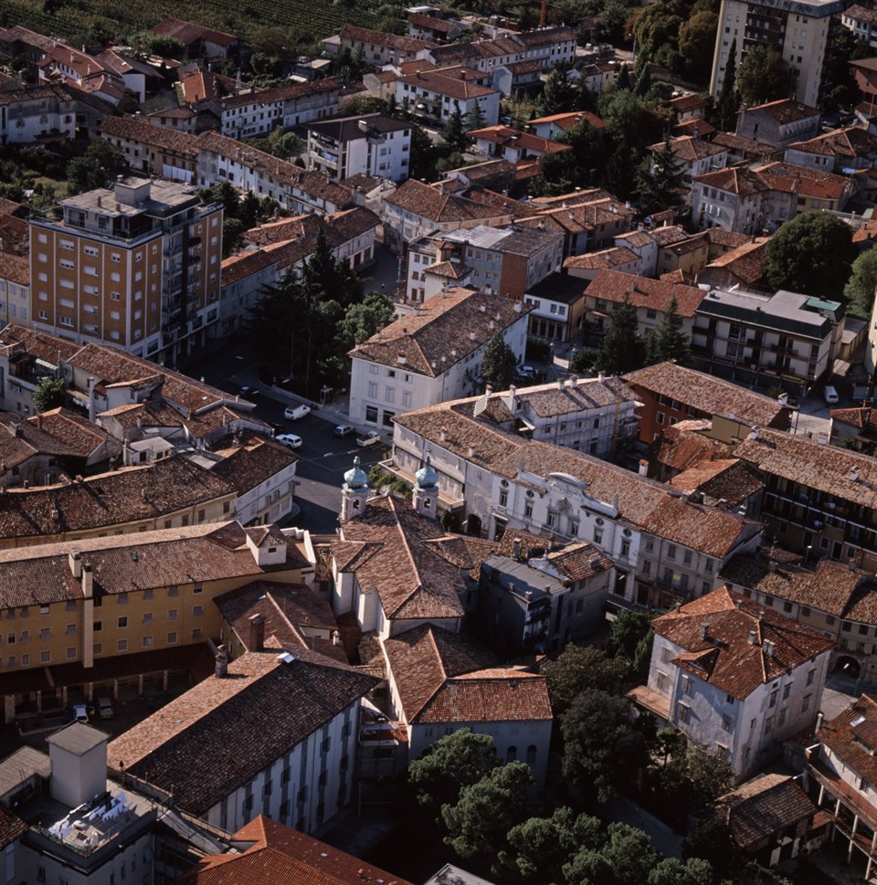 Veduta aerea della chiesa di Rosa Mistica e un tratto di piazza Giacomo Matteotti |