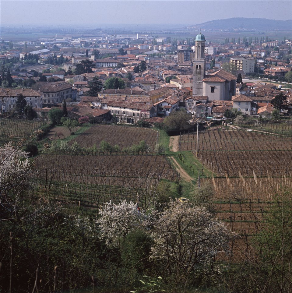 La chiesa di Sant’Adalberto (Duomo). In fondo il colle di Medea |