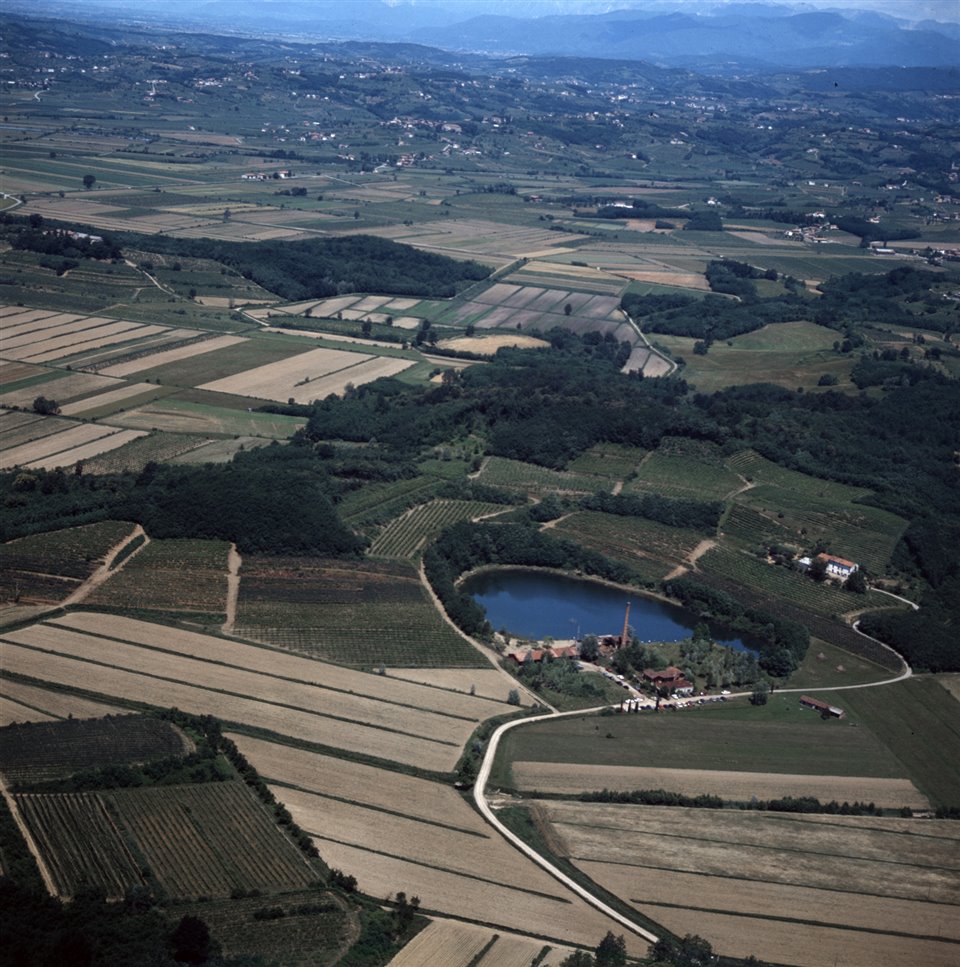 Veduta aerea di parte del territorio di Lucinico con il Collio |