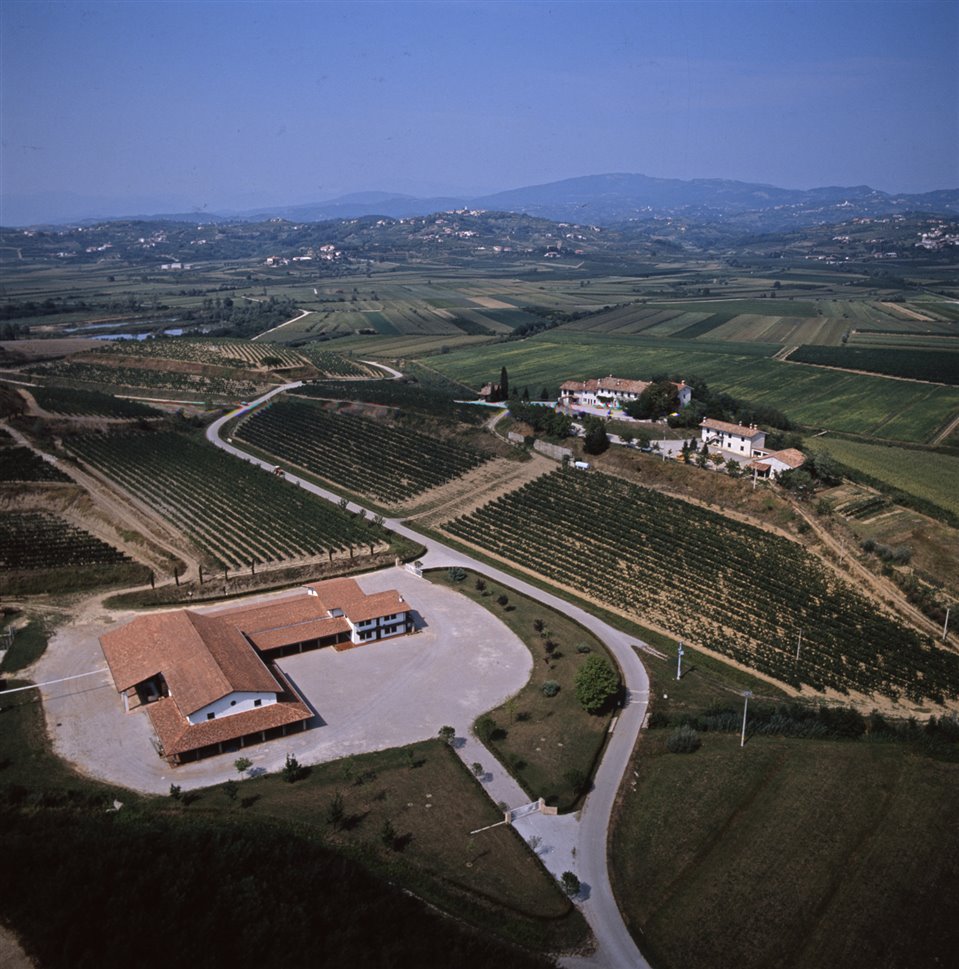 Veduta aerea dell’Azienda Agricola Russiz Superiore; sullo sfondo il Collio |