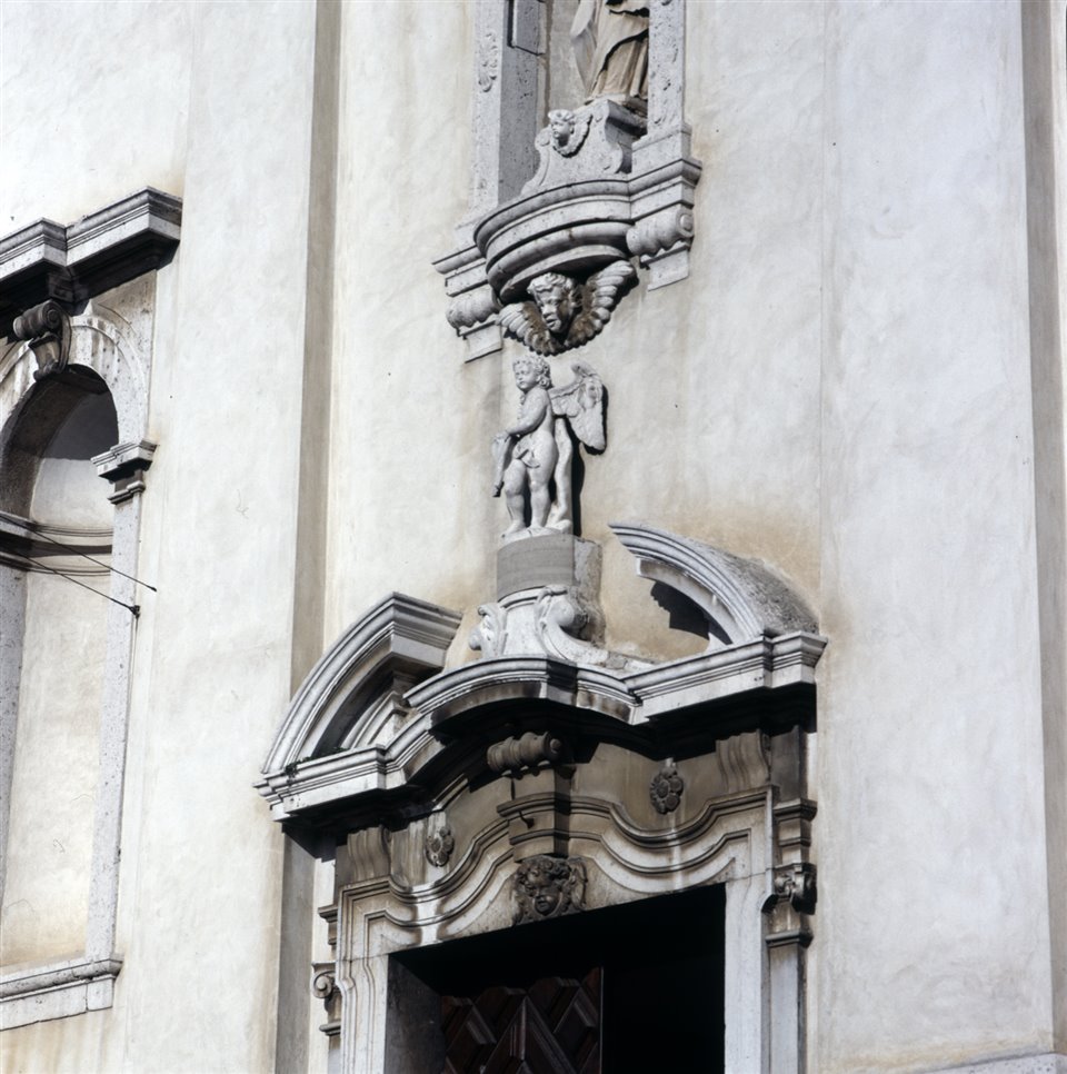 Particolare di statue e sculture sulla facciata della chiesa di Santa Maria Annunziata |