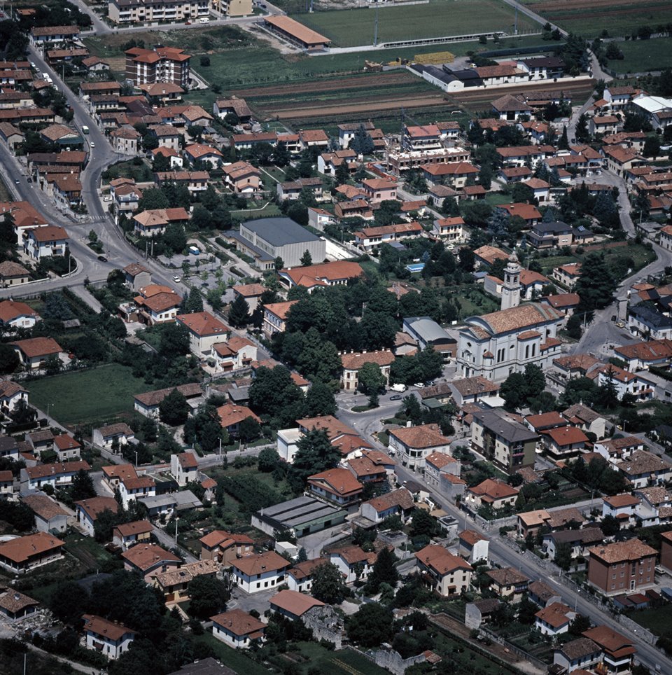 Veduta aerea della frazione di Sant’Andrea nel comune di Gorizia con la chiesa di Sant’Andrea |