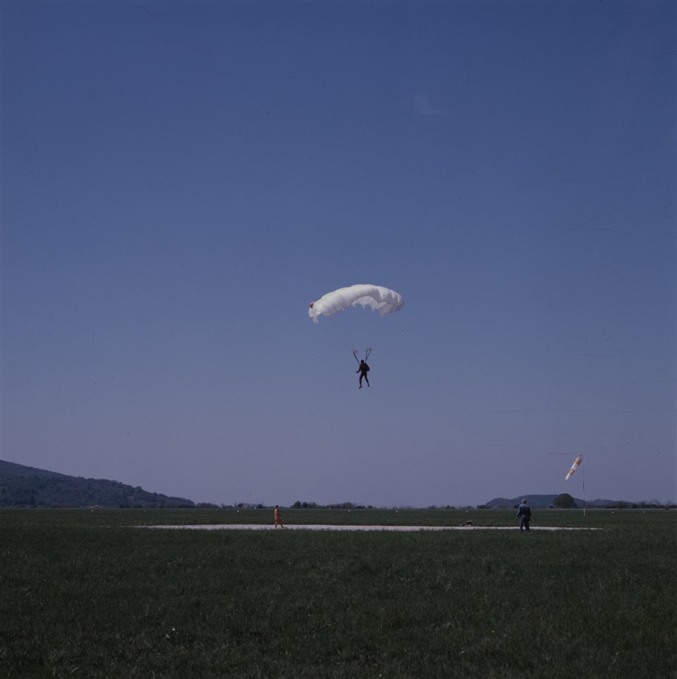 Atterraggio di un paracadutista all’aeroporto di Gorizia “Amedeo Duca d’Aosta” (in località Merna) |