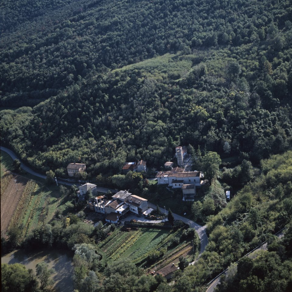 Veduta aerea della frazione di Gabria Inferiore nel comune di Savogna d’Isonzo con la chiesa di San Nicolò Vescovo |