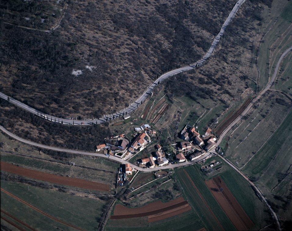 Veduta aerea della frazione di Visintini nel comune di Doberdò del Lago e un tratto della strada statale 55 |