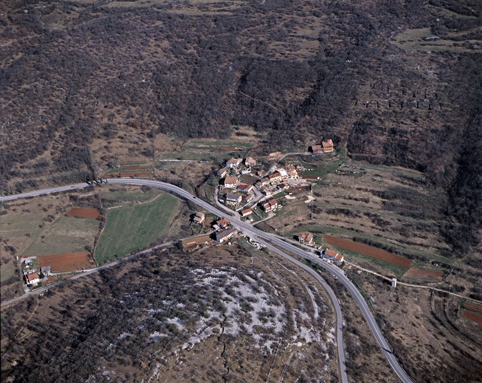 Veduta aerea della frazione di Palchisce nel comune di Doberdò del Lago con un tratto della strada statale 55 |