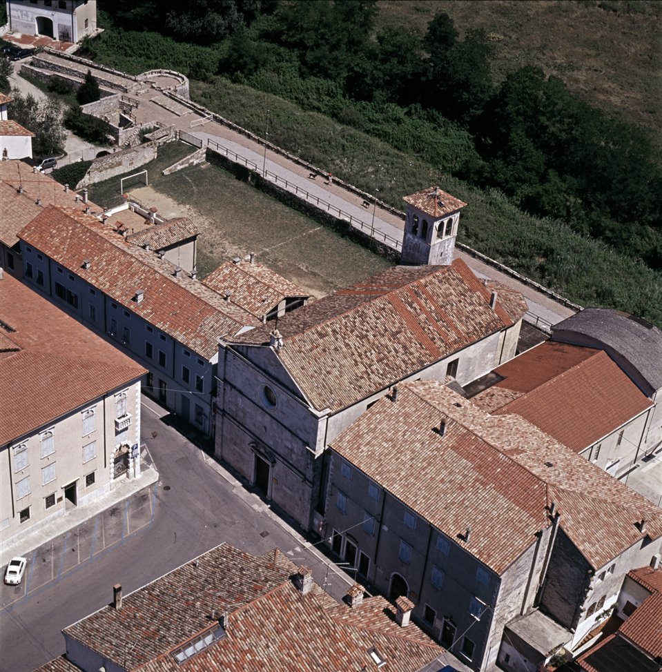 Veduta aerea di parte del centro storico di Gradisca d'Isonzo con un tratto di via Marziano Ciotti e via Cesare Battisti con la chiesa della Beata Vergine Addolorata |