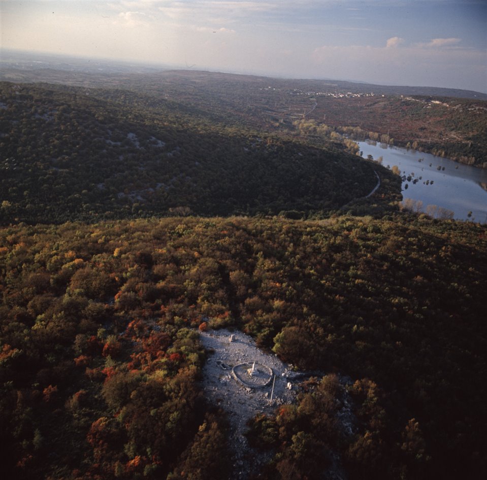 Veduta aerea del lago di Pietrarossa con in primo piano la Quota 144 (Arupacupa) sul Carso |
