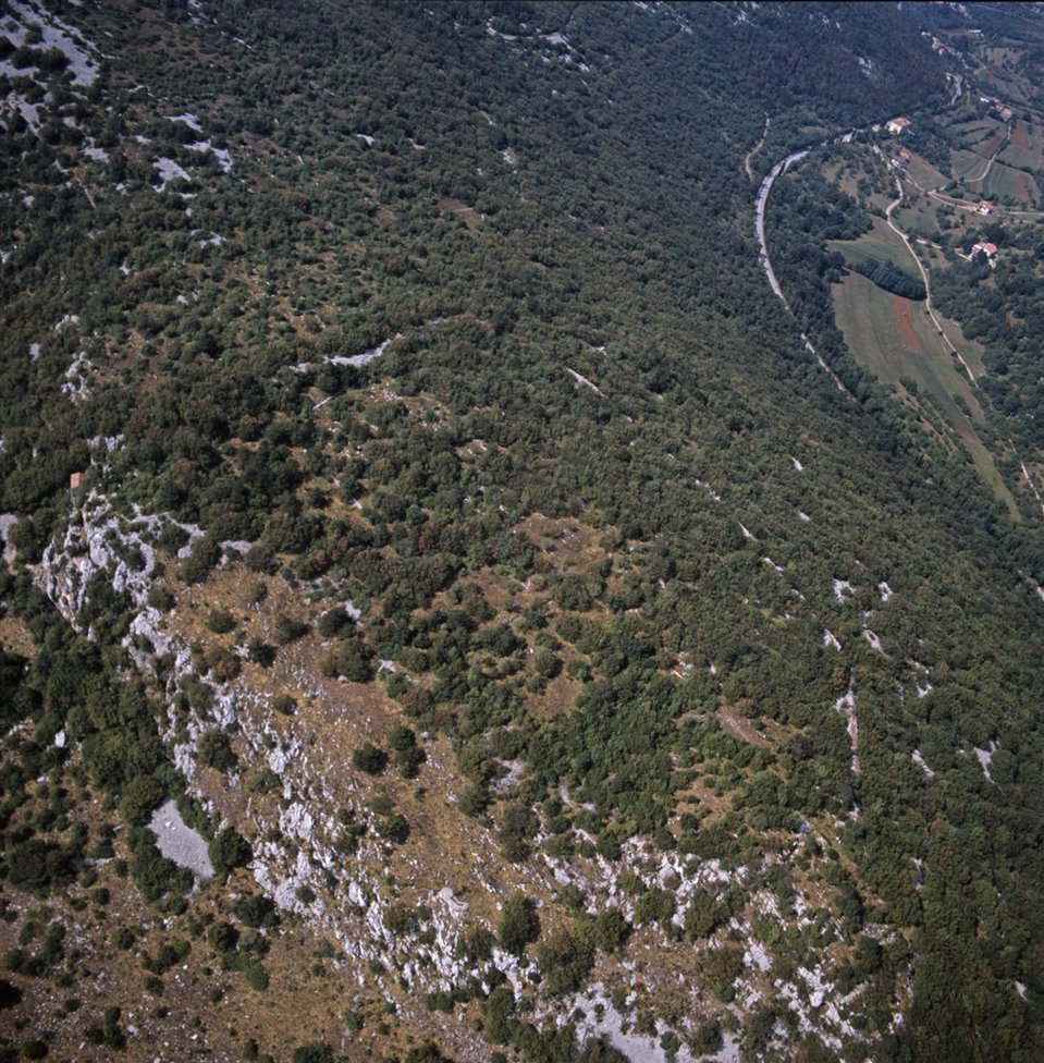 Veduta aerea del Carso con un tratto della strada regionale 55 |