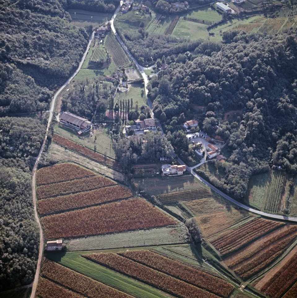 Veduta aerea della località Subida nel comune di Cormòns con la strada regionale 409 |