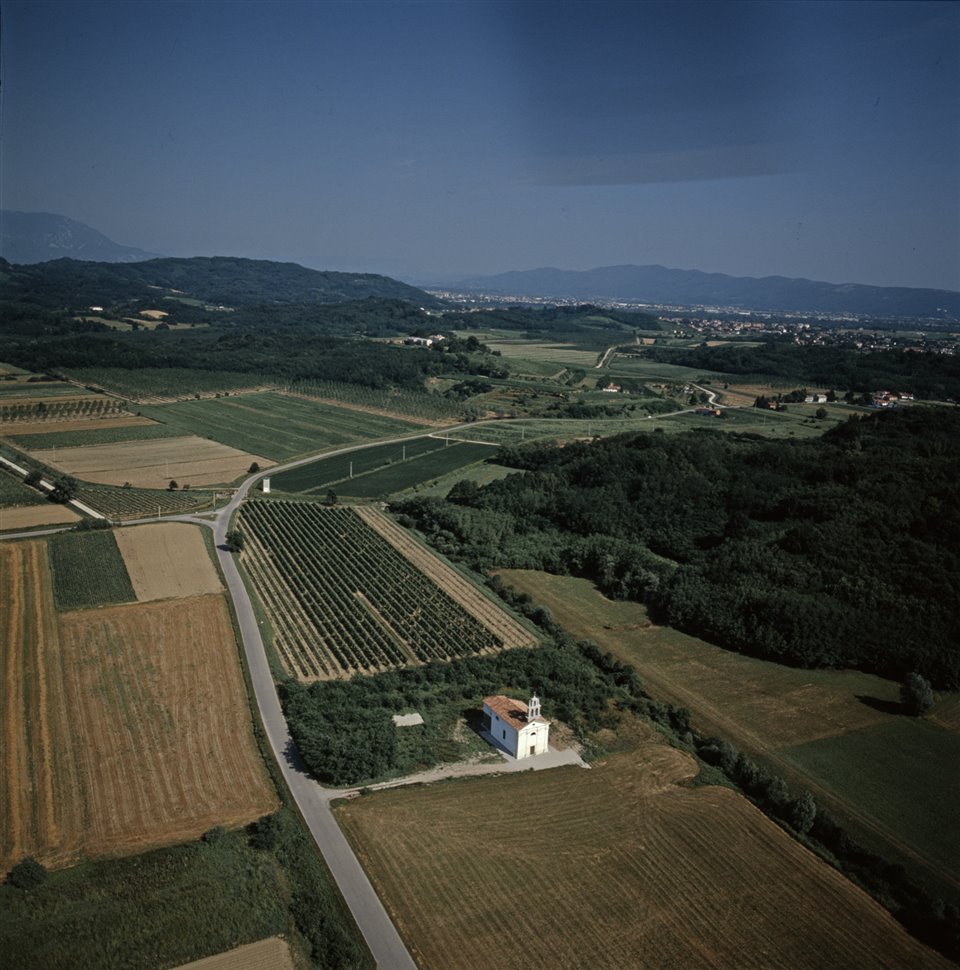 Veduta aerea del santuario Santa Maria del Preval con la strada regionale 409 |
