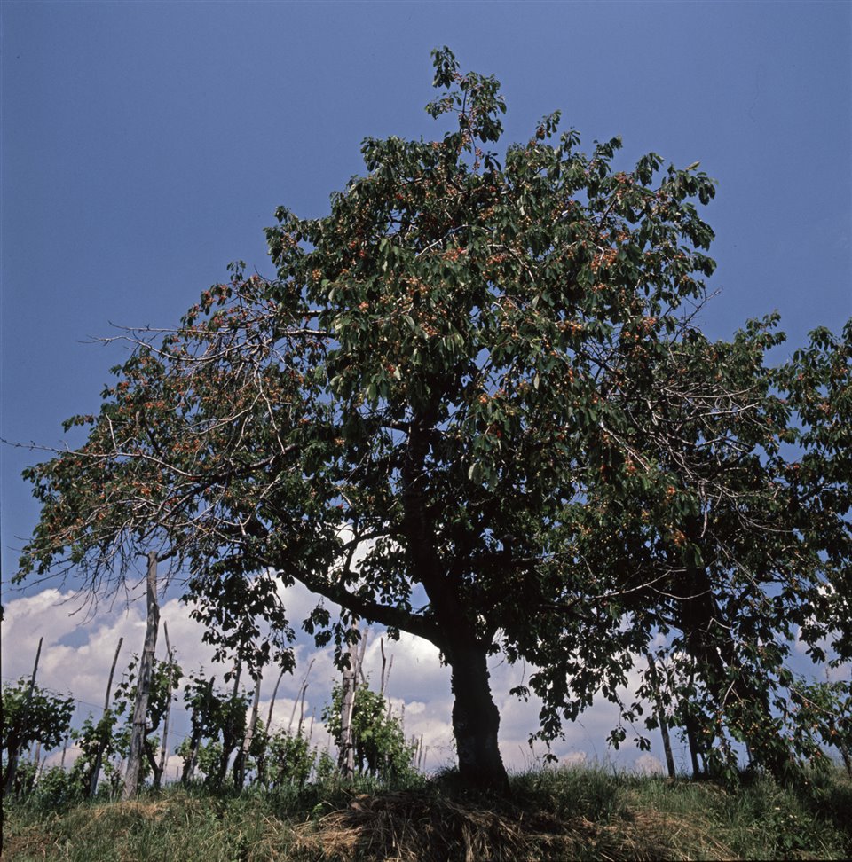 Ciliegi maturi e vigneti nella frazione di Oslavia nel comune di Gorizia |