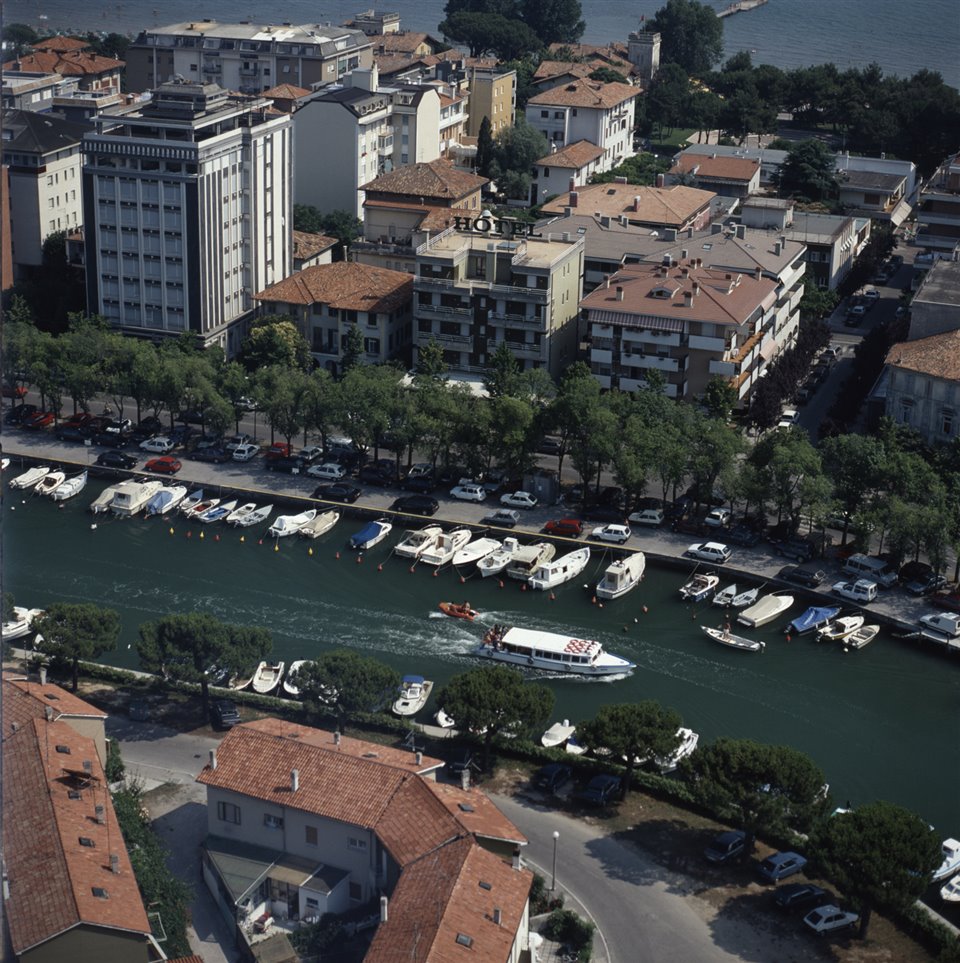 Veduta aerea del canale della Schiusa con un tratto di riva Slataper |