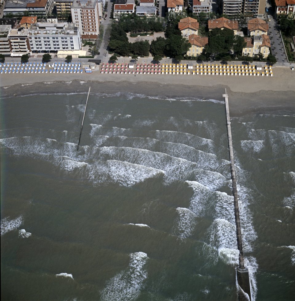 Veduta aerea di un tratto della spiaggia nuova e dell’Hotel Ville Bianchi |